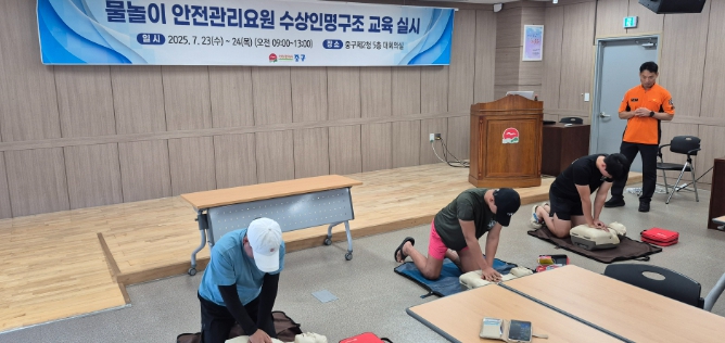 [뉴스스텝] 인천시 중구는 본격적인 여름 휴가철을 앞두고 지난 23~24일 양일간 제2청사 대회의실에서 해수욕장 안전관리 요원 22여 명을 대상으로 ‘특별 교육’을 진행했다고 밝혔다.