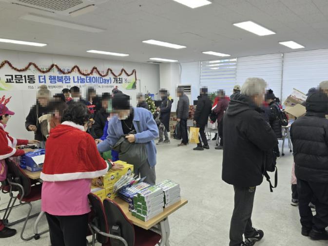 행사는 교문1동 지역사회보장협의체 위원들과 명예 사회복지 공무원들의 자발적인 자원봉사 참여로 운영돼, 지역사회가 함께 만드는 따뜻한 연말 나눔의 의미를 더했다.