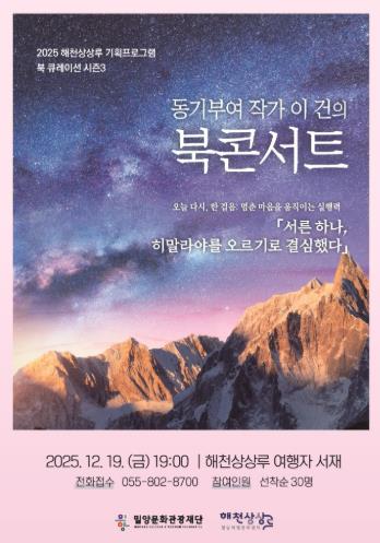 [뉴스스텝] 밀양문화관광재단은 오는 19일 오후 7시 해천상상루 여행자 서재에서 밀양여행문화센터 기획프로그램 ‘2025 북 큐레이션’ 네 번째 북 콘서트를 개최한다.