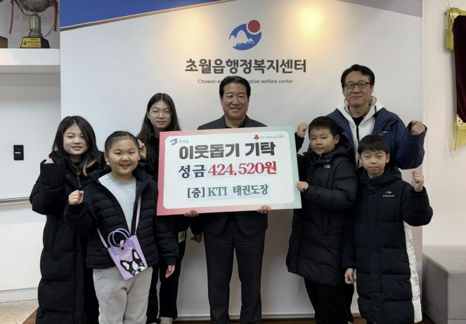 이에 대해 이학순 읍장은 “아이들과 함께 나눔을 실천해 온 KTI 태권도장의 따뜻한 마음에 감사드린다”며 “기탁된 성금은 지역 내 취약계층을 위해 투명하고 소중하게 사용하겠다”고 전했다.