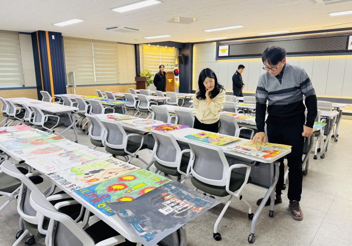 | ▲ 어린이 불조심 포스터 공모전 심사 모습 |