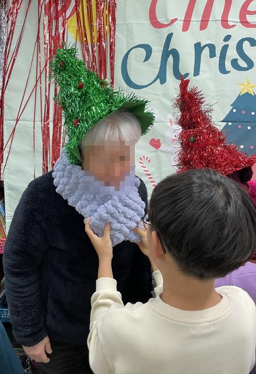 아이들과 어르신들은 크리스마스 파티 분위기 속에서 함께 향수 만들기 체험을 진행하고, 서로 목도리와 간식 꾸러미를 교환하며 훈훈한 시간을 보냈다. 이어 아이들이 직접 기타로 캐롤을 연주해 연말의 크리스마스 분위기를 한층 더했다.