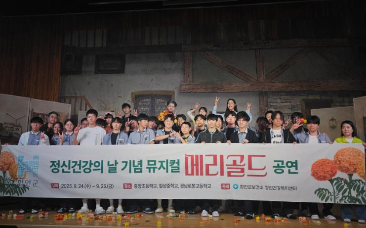 [뉴스스텝] 함안군보건소는 2025년 정신건강의 날(10월 10일)을 기념해 지난 24일부터 26일까지 3일간 관내 중앙초등학교, 칠성중학교, 경남로봇고등학교 재학생과 교직원 등 250여 명을 대상으로 찾아가는 생명존중 뮤지컬 ‘메리골드’를 공연했다고 밝혔다.