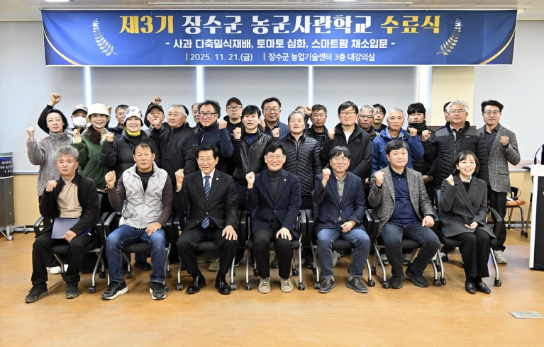 최훈식 장수군수는 “지난 9개월간 꾸준히 배우고 노력해 수료의 결실을 맺은 교육생들에게 큰 박수를 보낸다”며 “장수군은 앞으로도 전문 농업인력 양성을 위해 실무 중심의 교육을 지속적으로 확대하고, 미래 농업 경쟁력 강화를 위해 적극 지원하겠다”고 말했다.