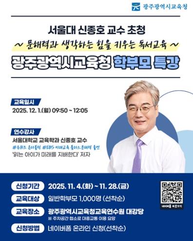 | ▲ 광주광역시교육청, 서울대 신종호 교수 초청 학부모 독서 특강 개최 |