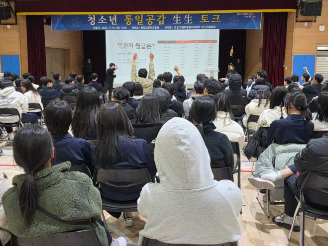 [뉴스스텝] 청도군은 지난 18일 청도고등학교 강당에서 민주평화통일자문회의 청도군협의회 주관으로 '2025 청소년 통일공감 生生(생생) 토크'를 개최했다고 밝혔다.