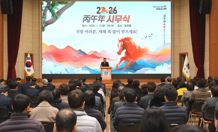 시무식에는 본청 직원과 직속기관·사업소 및 읍면동장 등 공무원들이 참석했으며, 국민의례와 시정 홍보 영상 상영, 신년사를 통해 새해 시정 방향을 공유하는 자리로 마련됐다.