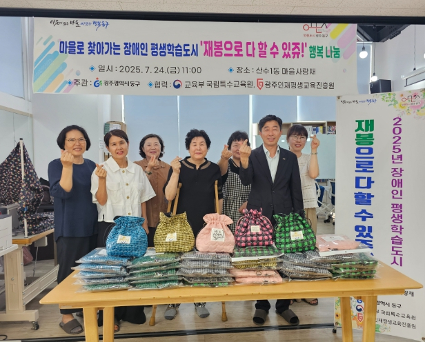 [뉴스스텝] 광주 동구는 장애인 평생학습도시 활성화를 위해 추진 중인 ‘재봉으로 다 할 수 있쥬’ 프로그램을 통해 산수1동 마을 여성 장애인들에게 제작한 가방을 전달했다고 밝혔다.