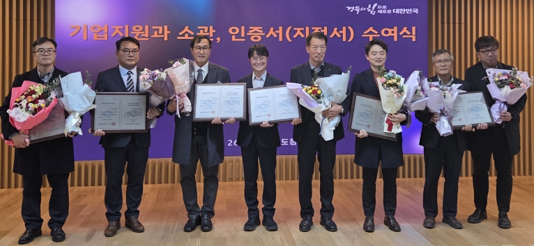 [뉴스스텝] 영천시는 지난 26일 경북도청에서 열린 ‘2025년 경상북도 PRIDE기업 인증서 수여식’에서 지역 기업인 한호에코스티㈜와 ㈜우성케미칼이 선정됐다고 밝혔다.