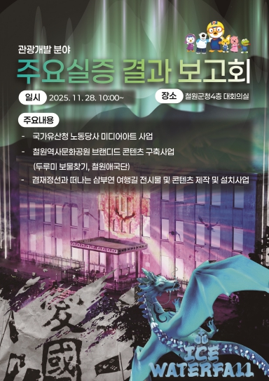 보고회에서는 국가유산청 노동당사 미디어 아트 사업, 철원역사문화공원 브랜디드 콘텐츠 구축사업, 겸재정선과 떠나는 삼부연 여행길 전시물 및 콘텐츠 제작 설치사업 등이 중점적으로 다뤄진다.