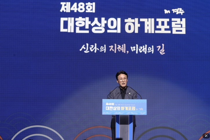 [뉴스스텝] 김민석 국무총리는 7월 16일 오후 경주에서 개최된 「제48회 대한상의 하계포럼」 개회식에 참석하여, 각 지역을 대표하는 상공회의소 참석자 및 기업인·경제인 등 600여명을 대상으로 기조강연을 했다.