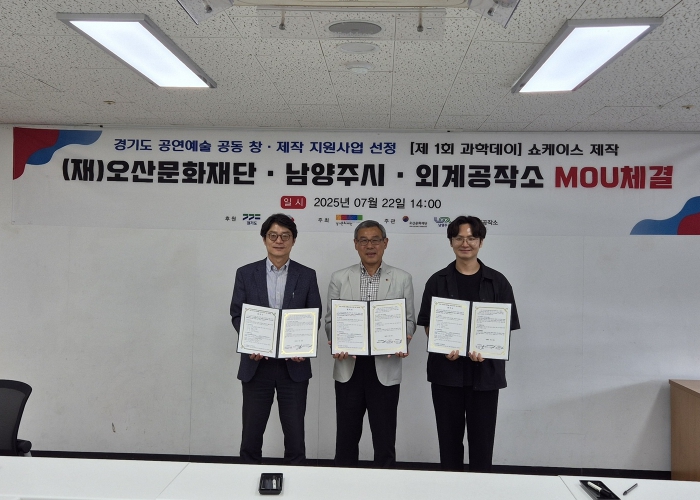 이번 사업은 경기문화재단이 주관하는 시범사업으로, 오산문화재단이 대표기관, 남양주시가 운영기관, 예술단체 ‘외계공작소’가 협력단체로 참여했다. 특히 경기도형 전막공연 1작품, 쇼케이스 1작품만이 선정된 가운데 이뤄진 이번 협약은 더욱 큰 의미를 갖는다.