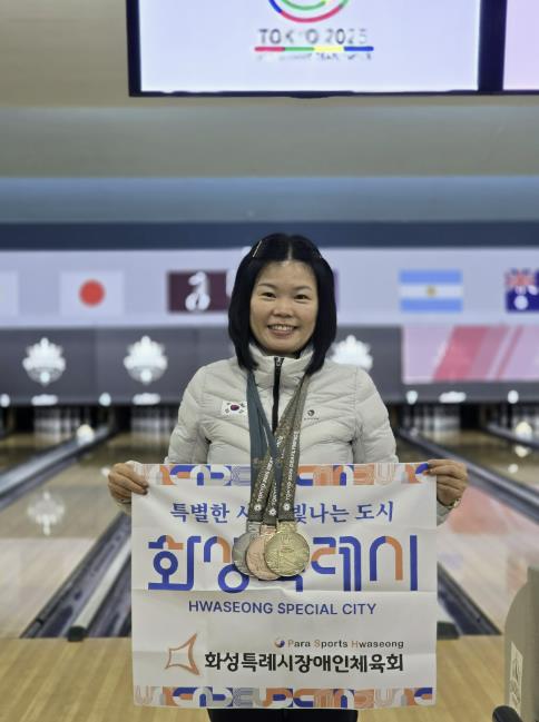 | ▲ 2025 도쿄 데플림픽에서 금1·은1·동1의 성적을 거둔 박선옥 선수가 메달을 목에 걸고 기념촬영하고 있다 |