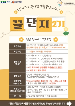 신청은 안성시 가족센터 홈페이지에서 가능하며, 자세한 내용은 홈페이지나 포스터를 통해 확인할 수 있다.