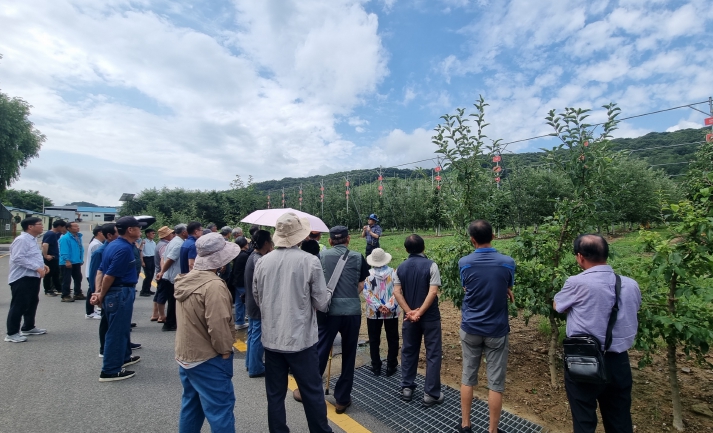 이번 견학은 기후변화로 인한 냉해 등 이상기후에 선제적으로 대응하고, 농가의 재배 기술 역량을 강화하기 위한 ‘과수 냉해 예방 시범사업’의 일환으로 추진됐다.