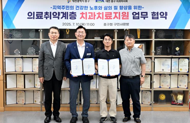[뉴스스텝] 대전 중구는 10일 대전 중구 치과의사회와 의료취약계층의 치과치료 지원을 위한 업무협약을 체결했다고 밝혔다.