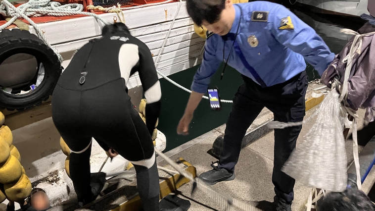 울산해경은 20일 새벽 03시27분경 울산 동구 방어진 항내 체낚기 사무실 앞 해상에 사람이 빠졌다는 신고를 접수한 즉시 방어진파출소 순찰팀을 현장에 출동 시켰으며, 방어진파출소 경찰관 3명이 인명구조 장비(¹긴급해상구조용 사다리)를 이용하여 요구조자 A씨(여,50대중반,신상공개거부) 신속히 구조했다.