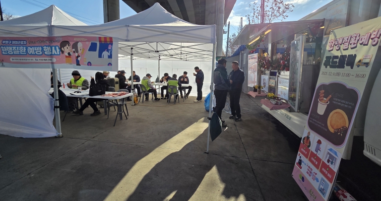 푸드트럭을 재활용선별장에 배치해 컵어묵과 씨앗호떡을 제공하고 바람막이 텐트, 난로, 의자와 테이블을 설치해 한랭질환 예방수칙을 전달했다.