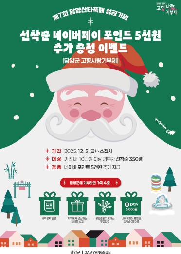 [뉴스스텝] 담양군이 연말을 맞아 5일부터 ‘고향사랑기부제 네이버페이 포인트 증정 이벤트’를 진행한다.