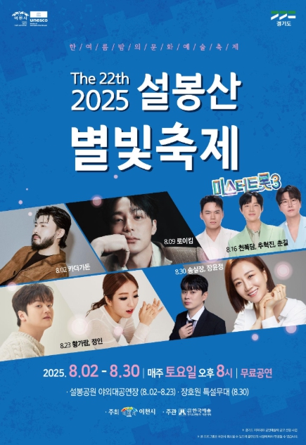 [뉴스스텝] 한 여름밤 대표 축제인 ‘2025년 제22회 설봉산 별빛축제’가 8월 2일부터 8월 30일까지 매주 토요일 밤에 개최되며, 시민들의 무더위를 단번에 날려줄 다양한 장르의 다채로운 공연을 선보일 예정이다.