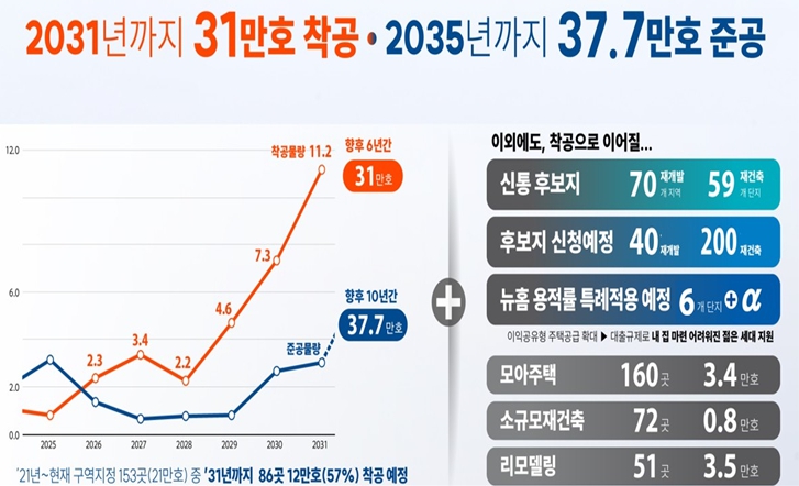 한편 서울시는 ‘신속통합기획 시즌 2’ 본격 가동을 통해 2031년까지 총 31만 호 착공, 2035년까지 37만 7천 호 준공 계획이다. 현재 정비구역 지정을 앞둔 사업장과 모아주택 등 소규모정비사업, 리모델링 물량까지 더하면 2031년까지 최대 39만 호 이상 공급이 가능한 물량이다.