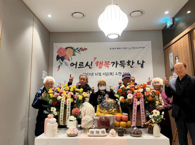 [뉴스스텝] 부평구노인복지관은 12월 4일, 부평구 관내 모 음식점에서 노인 맞춤돌봄서비스 사업 참여자 중 88세 이상 어르신 40명을 대상으로 건강과 행복을 기원하는 ‘어르신 행복 가득한 날’ 행사를 성황리에 진행했다고 밝혔다.