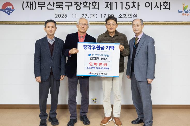[뉴스스텝] 부산 북구는 최근 한사랑내과병원 김지원 원장이 (재)부산북구장학회에 장학기금 500만 원을 기탁했다고 밝혔다.