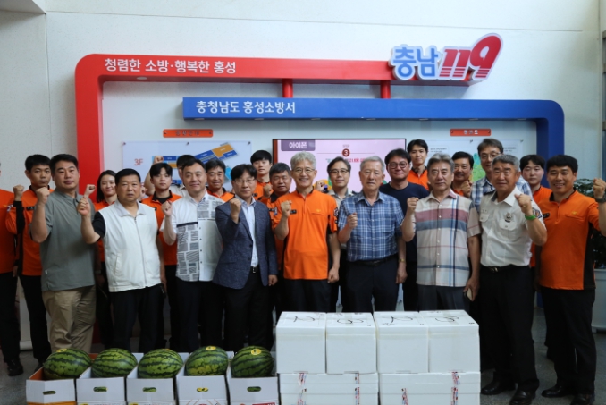 [뉴스스텝] 홍성소방서 발전위원회는 29일 소방서를 방문하여 여름철 자연재난(풍수해) 대비에 여념이 없는 현장활동 대원들을 격려했다.