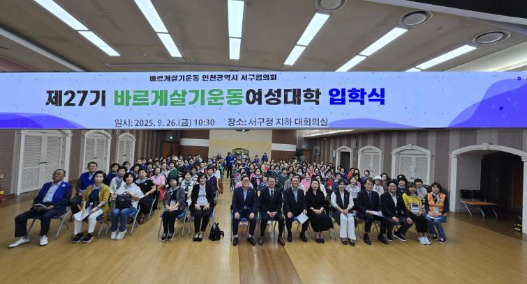 [뉴스스텝] 바르게살기운동 인천 서구협의회는 9월 27일 서구청 대회의실에서 ‘제27기 바르게살기운동 서구여성대학 입학식’을 개최했다.