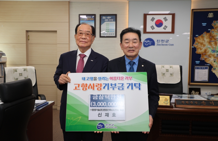 송기섭 진천군수는 “작년에 이어 진천군 발전에 깊은 관심을 보여주신 신 회장님께 진심으로 감사드린다”며 “기탁해 주신 기부금은 군민의 삶의 질 향상과 복지 증진을 위한 다양한 사업에 소중히 사용하겠다”고 말했다.
