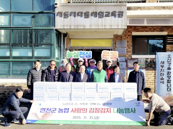 [뉴스스텝] NH농협 연천군지부는 연천군 관내 임진농협, 연천농협, 전곡농협과 21일 백학면 새둥지마을에서 사랑의 김장김치 나눔행사를 가졌다고 밝혔다.