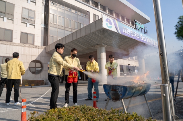 또 청사 건물에서 예기치 않은 화재 발생을 가상으로 설정하고 지휘반, 진압반, 대피유도반, 구조구급반 등 직원 자위소방대의 화재 초기 진압과 화재 발생에 대비한 종합 훈련으로 진행됐다.