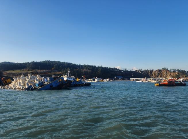 | ▲ 완도 청산도 항내서 바지선 기울어 침수... 완도해경 신속 대응 |