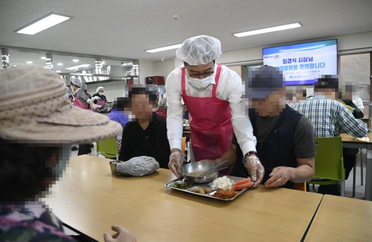 [뉴스스텝] 최경식 남원시장이 지난 10일 기능보강이 완료된 남원사회복지관 경로식당을 방문해 배식 봉사를 진행하며 어르신들과 소통하는 시간을 보냈다.