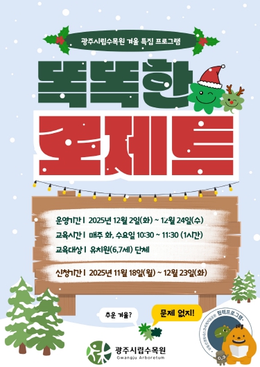 [뉴스스텝] 광주광역시립수목원은 오는 12월 2일부터 24일까지 수목원 방문자센터에서 6~7세 어린이단체를 대상으로 체험형 교육프로그램 ‘똑똑한 로제트’를 운영한다.