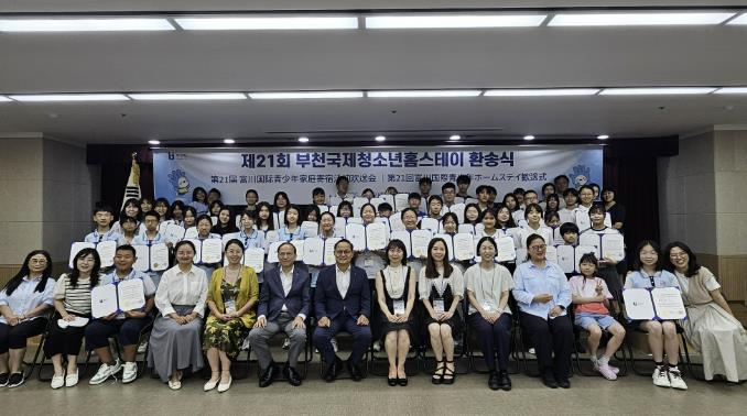 [뉴스스텝] 부천시는 지난 29일 부천시청 소통마당에서 ‘제21회 부천국제청소년홈스테이 환송식’을 열었다. 이번 행사에는 중국 하얼빈과 웨이하이, 일본 오카야마 청소년들이 참여해 부천 청소년들과 함께 다양한 문화 교류 활동을 펼친 뒤 6박 7일간의 일정을 마무리했다.