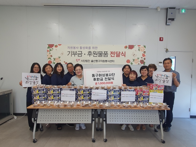 동구여성봉사단 이금주회장은 “지역사회를 위한 자원봉사가 더 활발해지길 바라는 마음에서 기부를 결정하게 됐다. 앞으로도 꾸준히 지역사회와 함께하겠다”고 전했다. 울산동구자원봉사센터 이순자이사장은 “자원봉사자들의 사기 진작과 네트워크 형성을 위한 뜻깊은 후원에 깊이 감사드린다. 기부금은 워크숍 준비와 운영에 소중히 사용하겠다”고 전했다.