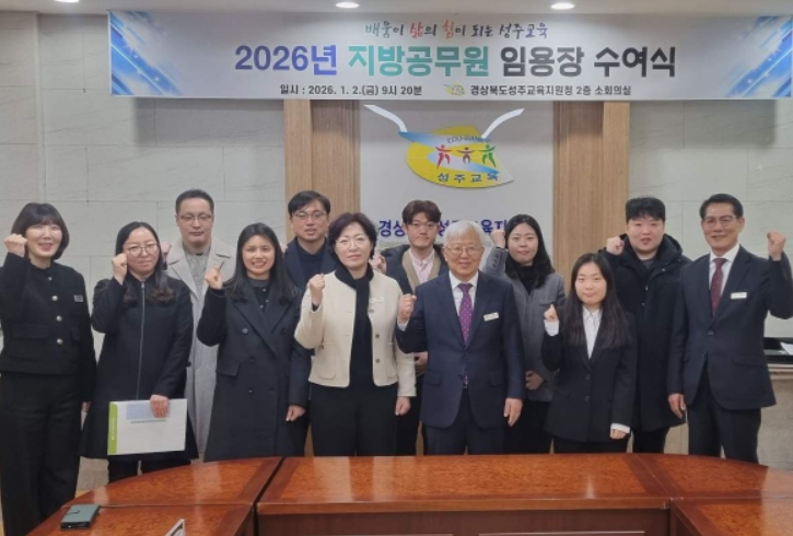 [뉴스스텝] 성주교육지원청은 2026년 1월 2일 청사 내 소회의실에서 지방공무원 전입자 및 신규 임용자를 대상으로 임용장 수여식을 개최했다.