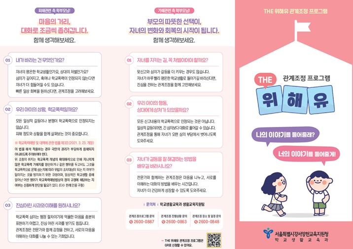 [뉴스스텝] 서울특별시교육청 산하 서울특별시강서양천교육지원청은 2025년 3월부터 학교폭력 사안에 대한 교육적 해결을 목표로 관계회복 중심의 ‘THE 위해유 관계조정 프로그램’을 운영하고 있다.