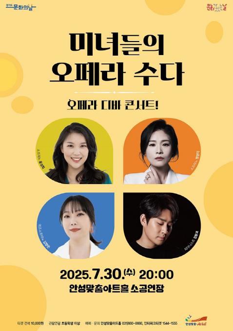 [뉴스스텝] 오는 7월 30일 오후 8시, 안성맞춤아트홀 소공연장에서는 7월 문화가 있는 날 기획 공연'미녀들의 오페라 수다'를 개최한다.