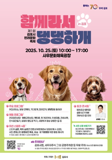 [뉴스스텝] 김포시는 반려동물과 시민이 함께하는 문화의 장인 제1회 김포시 반려문화축제 '함께라서 댕댕하개 in 김포'가 오는 10월 25일 사우문화체육광장(사우동)에서 개최된다고 밝혔다.
