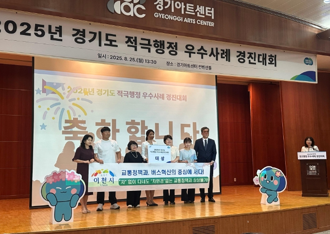 [뉴스스텝] 이천시는 8월25일 경기도 아트센터 컨벤션홀에서 펼친 『경기도 적극행정 우수사례 경진대회』에서 ‘대중교통 르네상스! 혁신적인 시내버스 개편’으로 대상을 받았다고 밝혔다.