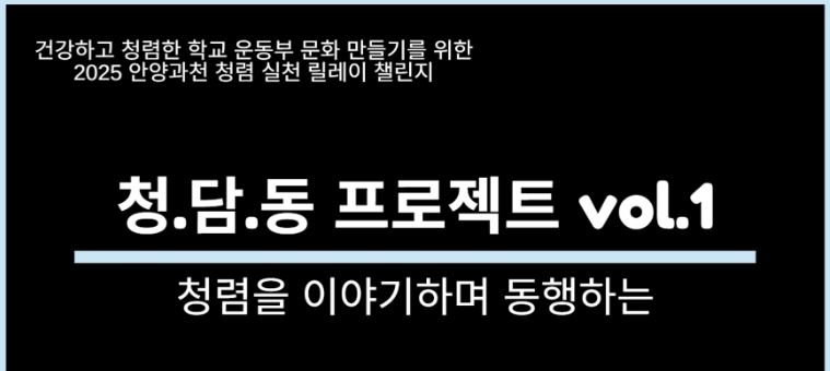 이번 챌린지는 투명과 공정, 청렴한 학교운동부 모습을 담은 영상을 60초 이내의 숏츠 형태로 촬영하여 경기도안양과천교육지원청의 청렴 교육과 홍보에 적극 활용한다.