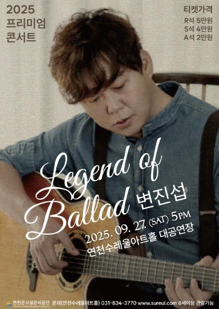 [뉴스스텝] 연천수레울아트홀은 오는 9월 27일 오후 5시 대한민국 발라드의 전설, ‘변진섭’의 단독 콘서트 'Legend of Ballad'를 개최한다.