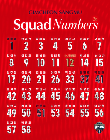 | ▲ 김천상무의 2026시즌 배번 |