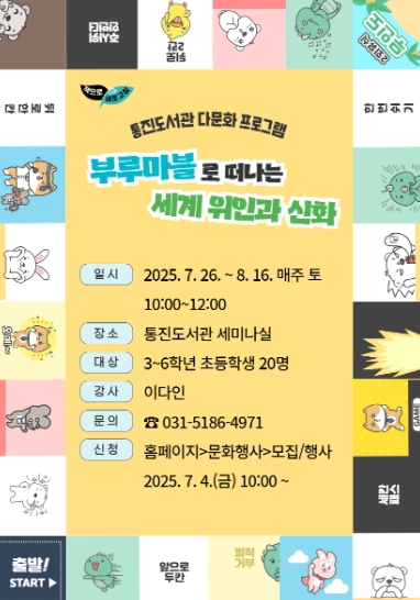 프로그램 신청은 7월 4일 오전 10시부터 통진도서관 누리집을 통해 온라인으로 진행되며, 초등학교 3~6학년 20명을 선착순으로 모집한다.