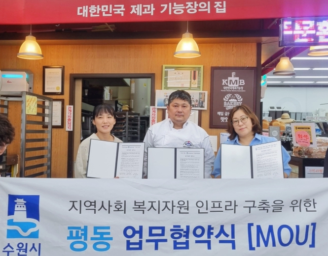 ▲ 수원시 권선구 평동 지역사회보장협의체, '최미삼 순대국'·'맛있는 빵집'과 잇따라 업무 협약(MOU) 체결 |