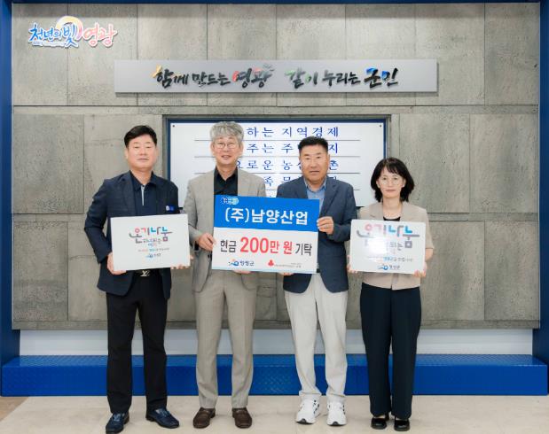 영광군수는 “지역과 함께하는 남양산업의 따뜻한 기부가 군민들에게 큰 힘이 될 것”이라며, “소중한 나눔이 지역사회 곳곳에 온기를 전할 수 있도록 최선을 다하겠다”라고 전했다.