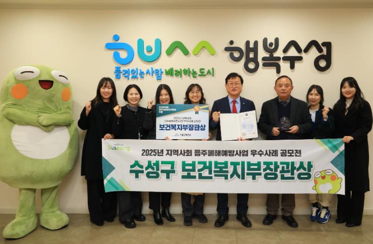 김대권 수성구청장은 “3년 연속 보건복지부 장관상 수상은 주민과 함께 만들어낸 성과”라며 “앞으로도 절주가 일상이 되고 건강이 문화가 되는 수성구를 위해 다양한 건강증진사업을 이어가겠다”고 말했다.