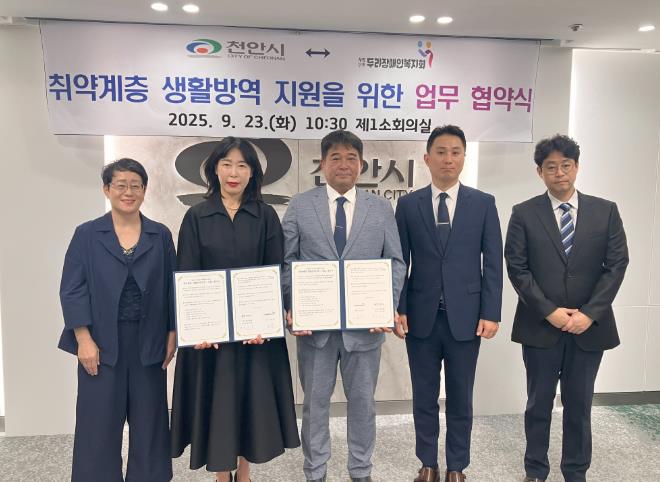 [뉴스스텝] 천안시는 (사)두리장애인복지회와 ‘취약계층 생활방역 서비스 업무협약’을 체결하고 무료 생활방역 지원 대상을 저장강박 의심가구까지 확대한다고 23일 밝혔다.